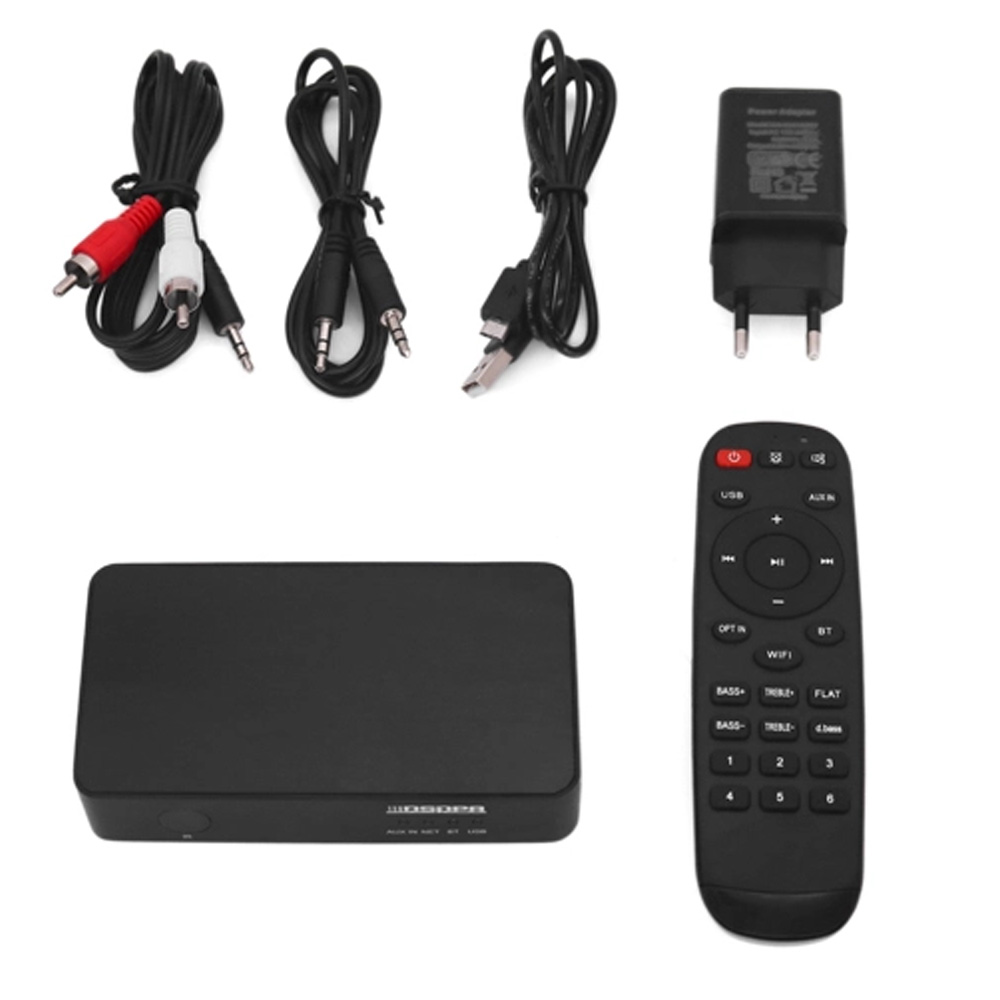 DW01 легко интегрируется в домашнюю сеть, поддерживая протоколы AirPlay, Spotify Connect, Qplay, DLNA и UPnP, что делает управление интуитивным и гибким. Вы можете использовать приложение 4STREAM для iOS и Android, переключать источники, настраивать эквалайзер или управлять воспроизведением с помощью комплектного пульта дистанционного управления. При желании DW01 можно подключить по micro USB к компьютеру и передавать звук напрямую в цифровом виде. Поддержка потоковой передачи по Wi-Fi без ограничений по расстоянию и стабильный Bluetooth 5.0 до 15 метров обеспечивают удобство в любой ситуации.