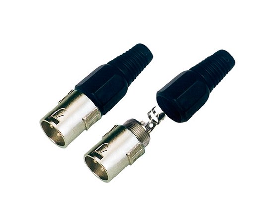 Разъем кабельный "канон-папа", 3-х пиновый, корпус коннектора из черного пластика, никелированные детали, эргономичный дизайн для удобства при использовании.