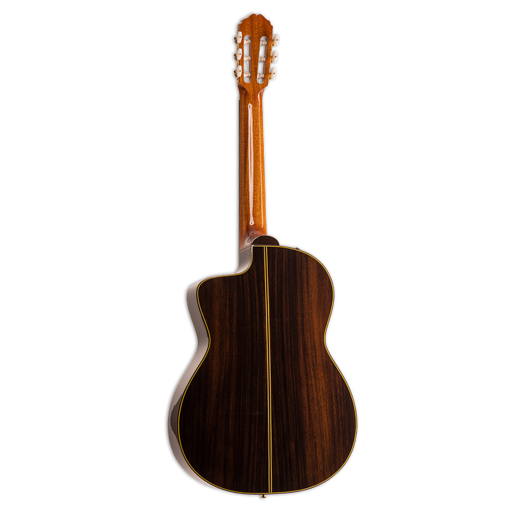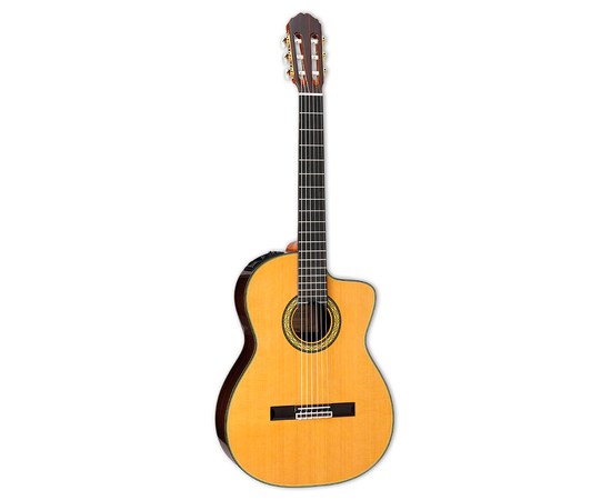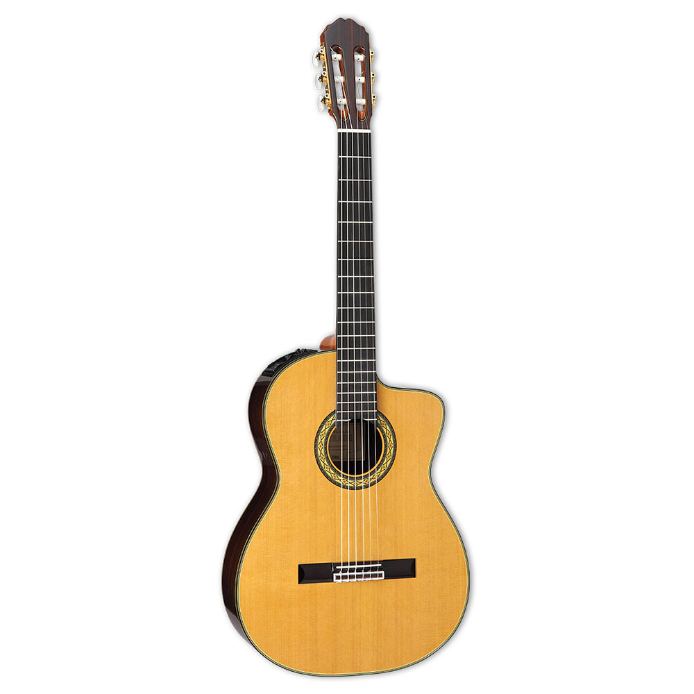 Классическая гитара с подключением, верхняя дека из массива кедра, нижняя дека и обечайка из массива палисандра, гриф из красного дерева с накладкой из черного дерева, ширина порожка 51 мм, запатентованная система предусилителя CTP-3 Cool Tube™, резонаторное отверстие с яркой инкрустацией, элегантная глянцевая отделка в натуральном цвете, в комплекте фирменный кейс GC300.