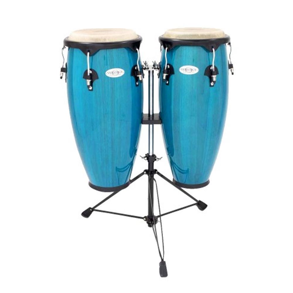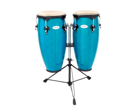 Комплект кубинских барабанов конга, корпус из двухслойной фанеры высотой 28", диаметр мембраны из сыромятной кожи 10" и 11", в комплекте стойка Percussion 2300BB серии Synergy, цвет Багамский голубой (Bahama Blue).