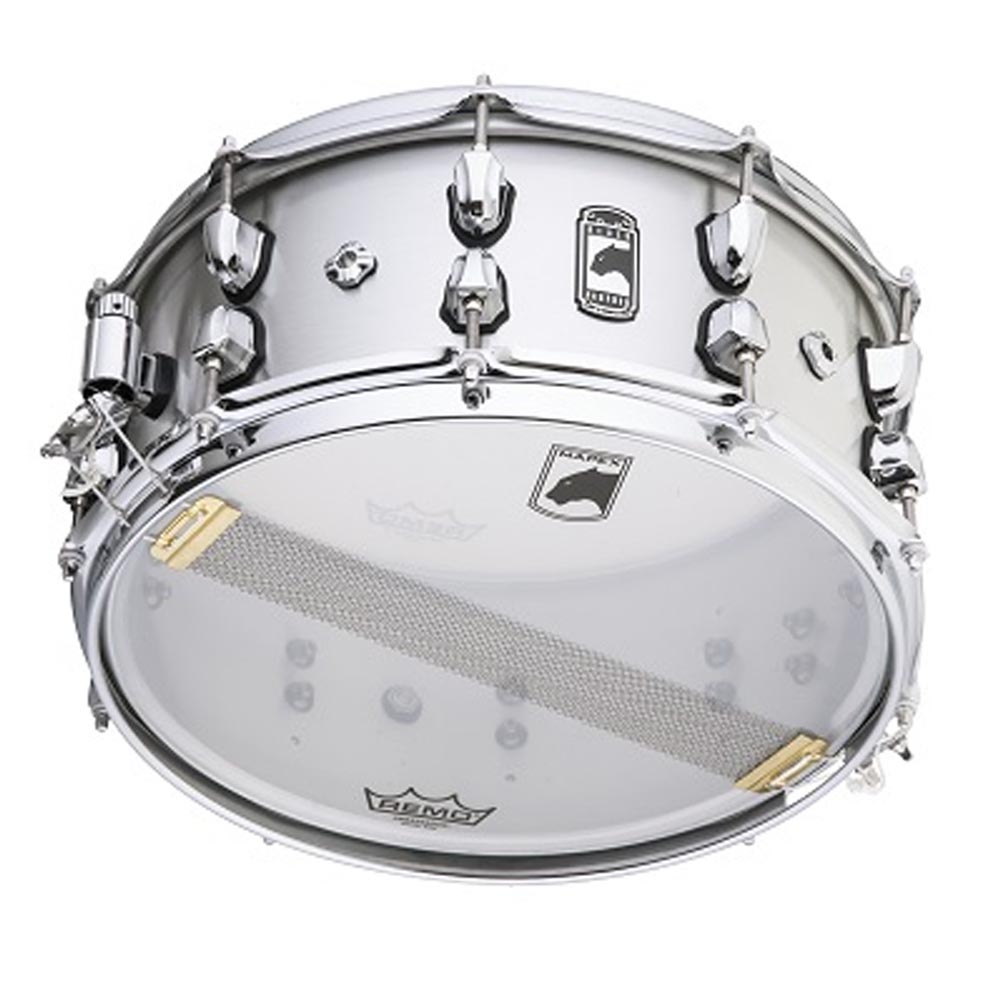 Малый барабан серии Black Panther, размер 14" x 6,5", алюминиевый с прорезями корпус толщиной 2,0 мм и шириной 5,5", встроенные блокирующие B-образные выступы, 3 вентиляционных отверстия, хромированная фурнитура.