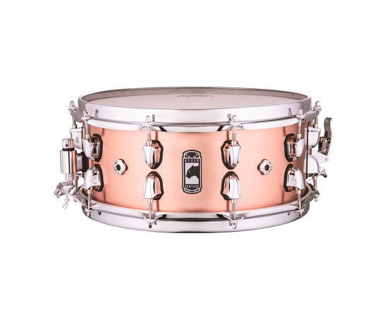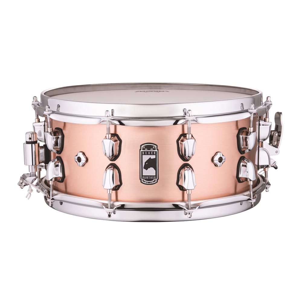 Малый барабан серии Black Panther Predator, размер 14 "х 6", корпус из меди 1,2 мм, катаная/формованная несущая кромка SONIClear™ 45°, встроенные блокирующие B-образные выступы, пластики Remo Ambassador, хромированная фурнитура, обручи Sonic Saver.