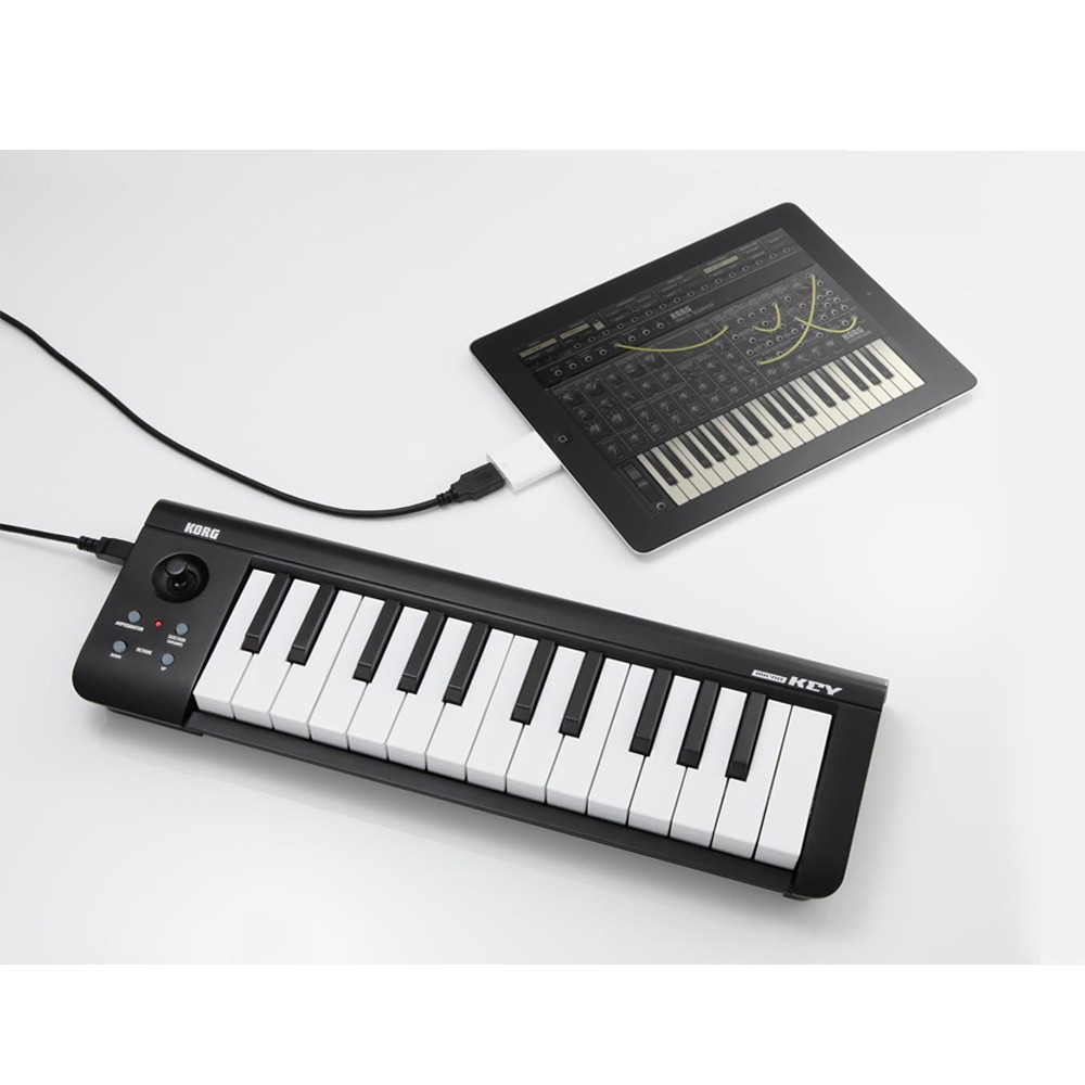 Вы можете подключить microKEY к своему iPad и использовать его для управления таким приложением как Korg iMS-20 через MID. Для подключения вам понадобится концентратор с питанием, если вы планируете использовать microKEY в течение продолжительного времени.
