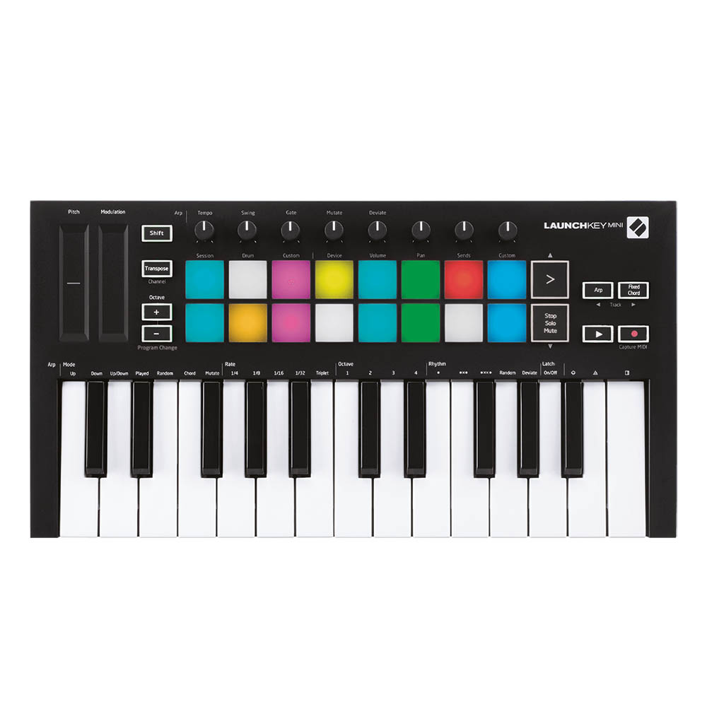 Launchkey Mini — самая компактная и портативная MIDI-клавиатура от Novation с 25 мини-клавишами. В ней есть все необходимое, чтобы начать творить в Ableton Live, она даже поместится в вашей сумке! Создавайте треки в любом месте с помощью интуитивно понятного управления Ableton Launchkey Mini, креативного арпеджиатора, режима Fixed Chord, выхода MIDI и множества звуков прямо из коробки.