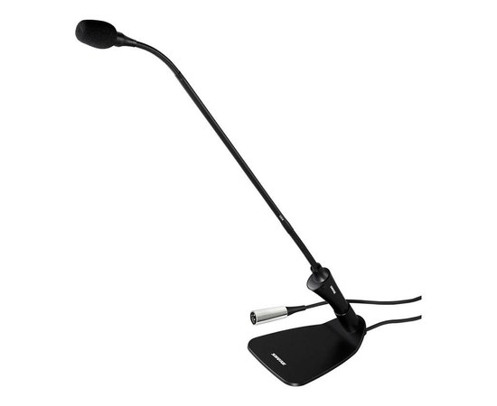 Кардиоидный микрофон на «гусиной шее» состоит из встроенного настольного основания, встроенного предусилителя и светодиодной подсветки для проведения конференций. Он оснащен двухсекционным кабелем для позиционирования и радиочастотной фильтрацией Commshield для защиты от помех.
