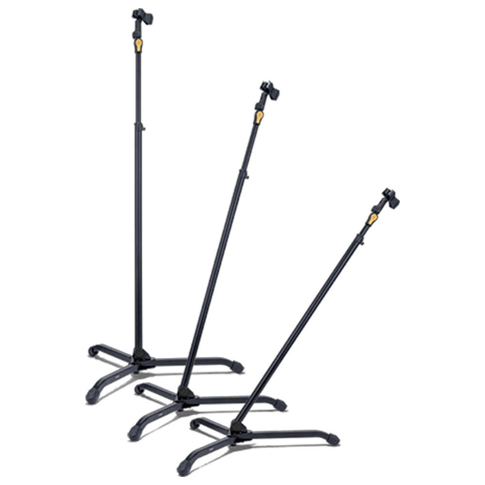 Регулировка высоты одной рукой делает процесс настройки быстрым и интуитивным, позволяя сосредоточиться на выступлении, а не на оборудовании. Наклонное основание дает возможность установить стойку под нужным углом, включая рекомендуемый диапазон 45°-90°, что особенно удобно при работе с барабанами и сценическими конфигурациями. Широкое основание и независимо регулируемые поворотные ножки обеспечивают устойчивость и адаптацию под разные поверхности, при этом конструкция остается компактной и легко складывается для транспортировки. Дополнительный зажим EZ Adaptor Flip Clip позволяет быстро и надежно закрепить микрофон и совместим со всеми стандартными стойками.
