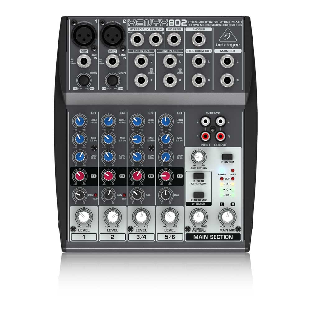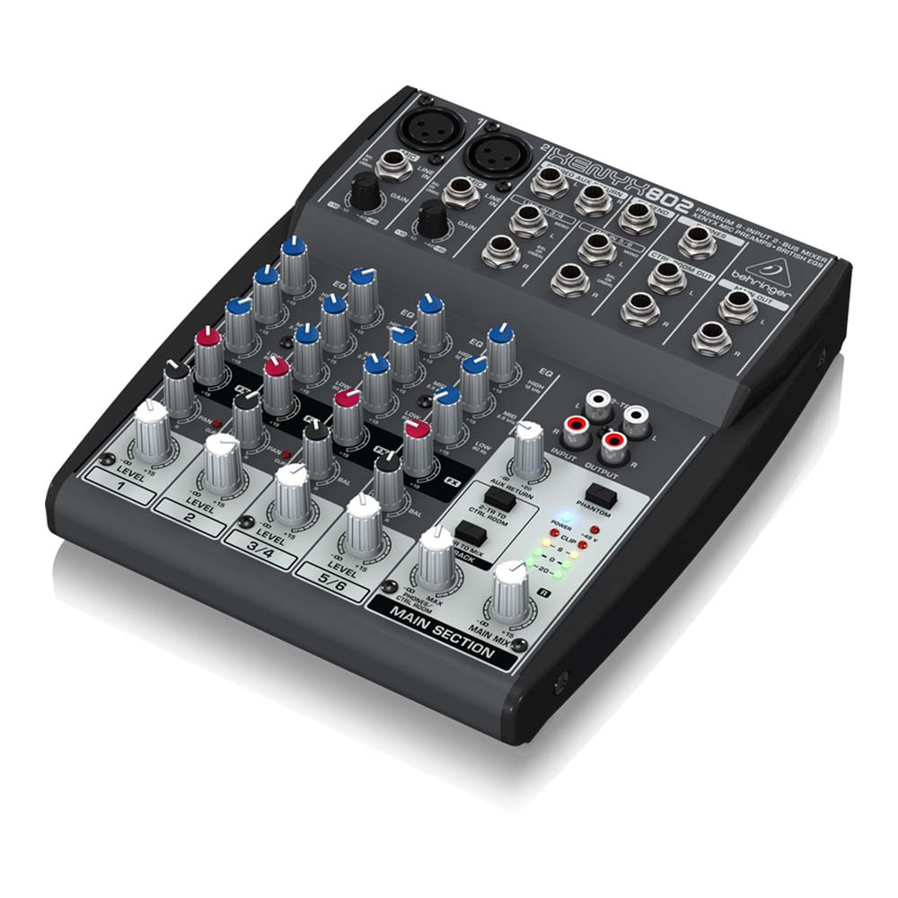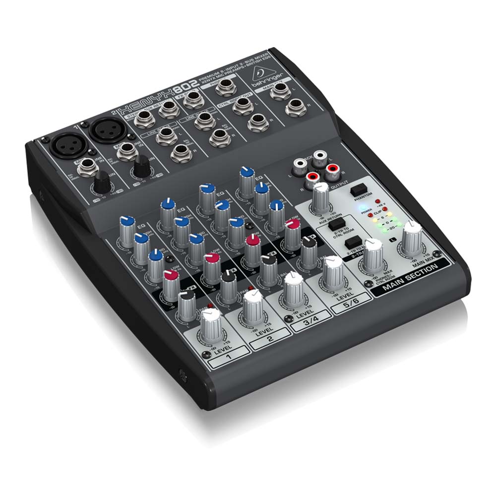 8-входов 2-bus шины XENYX 802 имеет два микрофонных предусилителя XENYX с фантомным питанием +48 В, что позволяет использовать 2 динамических или конденсаторных микрофона. 3-полосный британский эквалайзер прославился во всем мире звуковой индустрии за его теплый, музыкальный звук. Вы можете использовать вход для отправки или возврата эффектов XENYX 802, подключение к внешним эффектам, а также встроенные RCA CD / Tape Входы (основной микс или Control Room / наушники, назначаемые) и выходы позволяют воспроизводить музыку между сетами и записывать ваши миксы с помощью портативного рекордера.