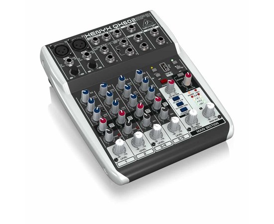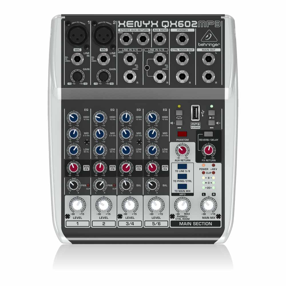 Ультракомпактный 6-канальный микшер XENYX QX602MP3 с 6 входами (2 микрофона, 2 стерео) позволяет вам без проблем получить высококачественный звук благодаря двум встроенным микрофонным предусилителям XENYX Mic с доступным фантомным питанием и ультра-музыкальными «Британскими» канальными эквалайзерами. Добавьте к этому высоко-производительный MP3-плеер и доступ к аудиофайлам с USB-накопителя, встроенный 24-битный стереофонический мульти-FX-процессор с пресетами для реверберации и задержки студийного класса, QX602MP3 является невероятно универсальным и удивительно доступным микшером!
