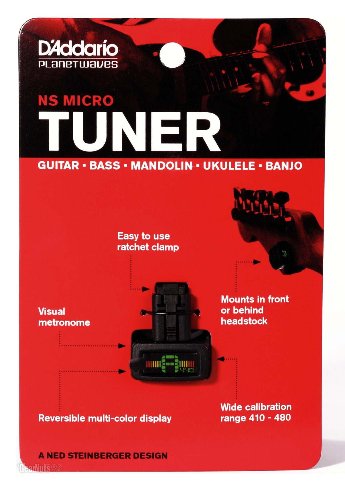 - Сделан для настройки акустических и электрических гитар, бас-гитар, мандолин, банджо и других струнных инструментов