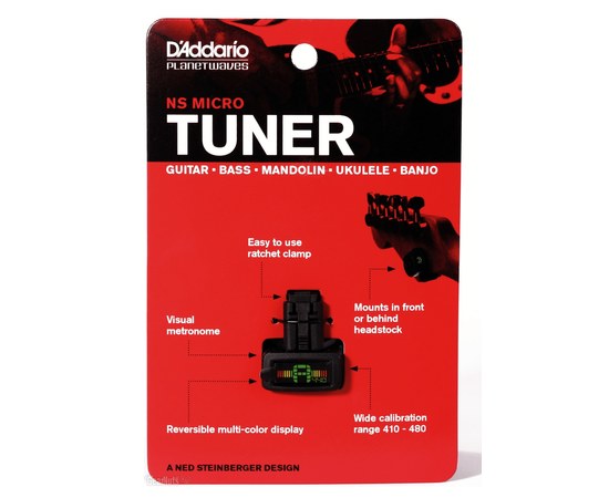 В то время как количество функций растет, размер NS Mini, только уменьшается.... Представляем вашему вниманию NS Micro Headstock Tuner. Тюнер NS Micro обеспечивает повышенную точность, более быстрый отклик, расширенный диапазон калибровки, визуальный режим метронома и улучшенный дизайн трещотки. Высокочувствительный пьезоэлектрический преобразователь и легко читаемый дисплей с многоцветной подсветкой позволяют производить высокую точность настройки в шумных помещения с тусклым или хорошим освещением, а микро дизайн и поворачиваемый экран позволяют устанавливать на задней или передней стороне грифа и оставаться там постоянно. Поворотный механизм с углом 360° и регулируемый зажим, предлагают оптимальные углы обзора и максимальную гибкость позиционирования. В результате, NS Micro будет чувствовать себя как дома и на леворуких, и на праворуких гитарах, а также на грифах любой толщины, что делает его идеальным выбором для любого инструмента и музыканта. NS Micro питается от легкодоступной батареи CR2032 (в комплекте) и обеспечивает максимальный срок службы батареи, используя функцию автоматического выключения, выключая тюнер автоматически через нескольких минут после включения питания.