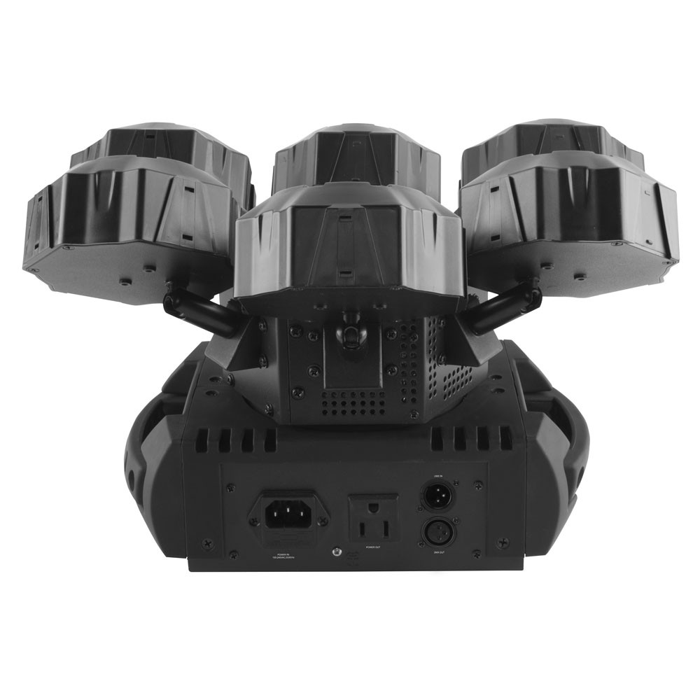 - Узкие, рассекающие воздух, RGBW лучи и возможность управлять каждым из 6 лучей по-отдельности обеспечивают максимальный охват площадки и создают неповторимые и воздушные эффекты