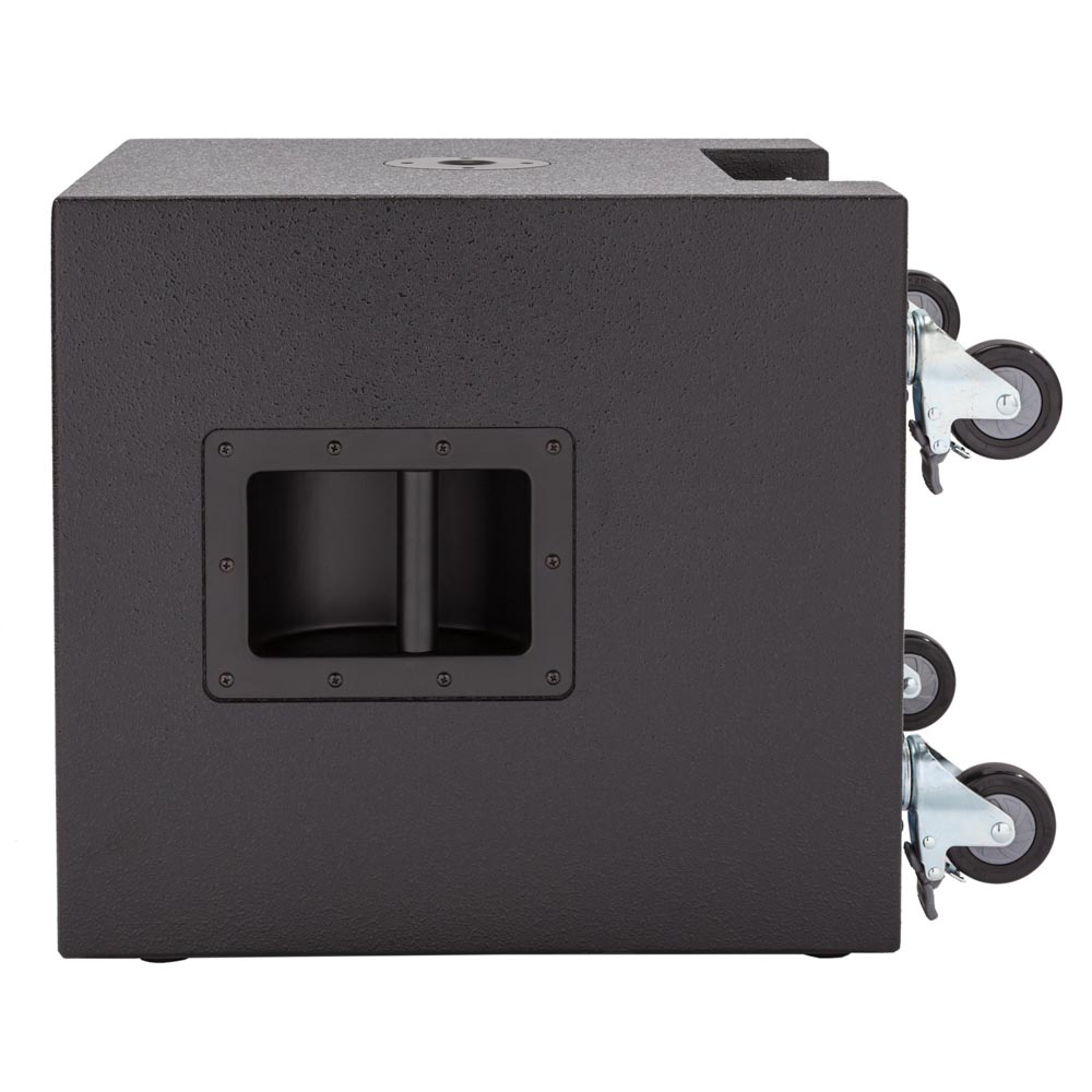 - Кабинет сабвуфера оборудован 4-мя роликами и местом для транспортировки сателлитов