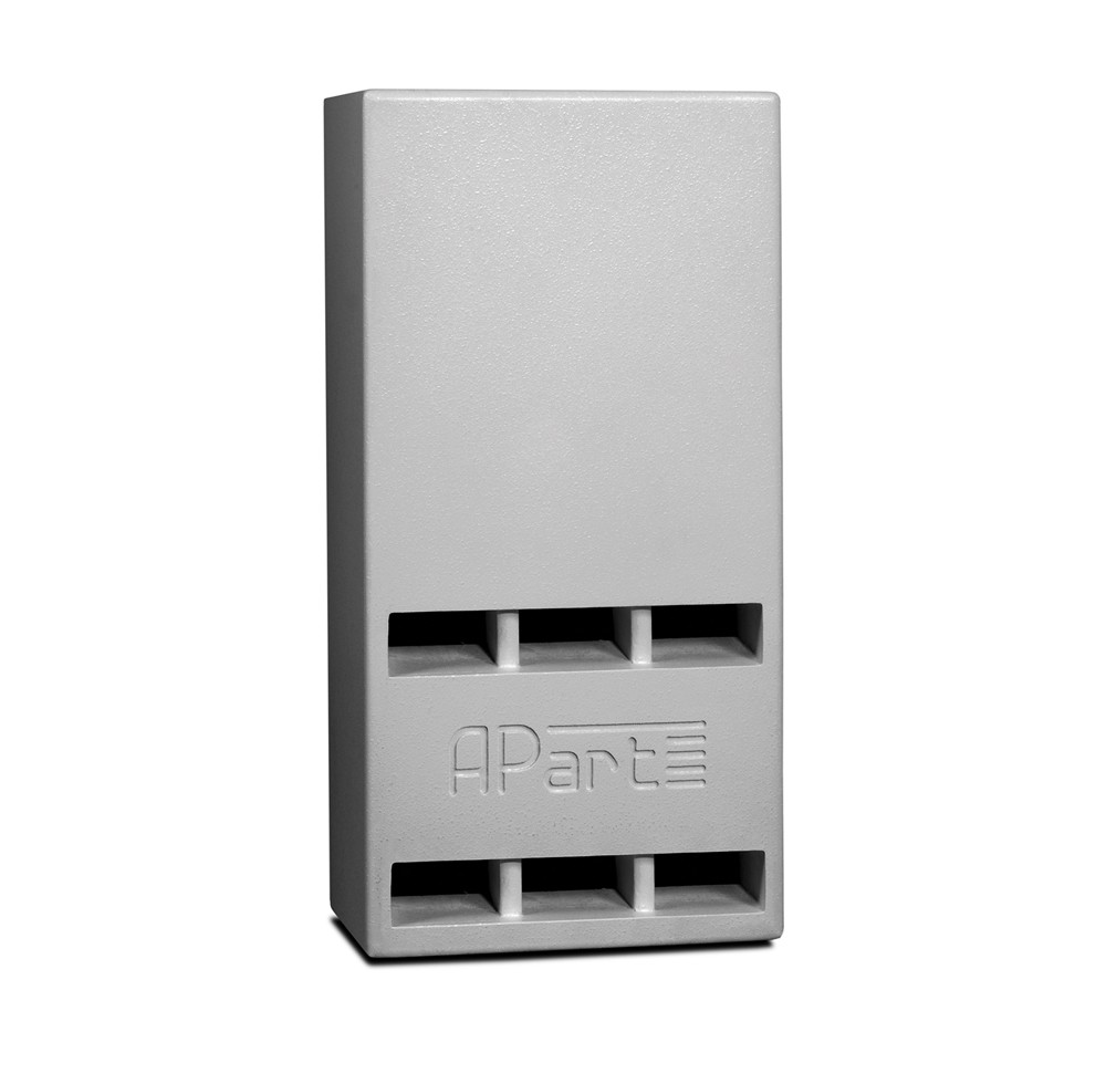 Корпус APart SUB2201 выполнен из фанеры и окрашен текстурированной краской. Благодаря сочетанию компактных размеров и большой мощности сабвуфер можно встроить в мебель и наслаждаться насыщенными басами во всем помещении. Сверху на сабвуфере располагается металлический адаптер под штангу диаметром 35 мм, на которую можно установить другие громкоговорители.