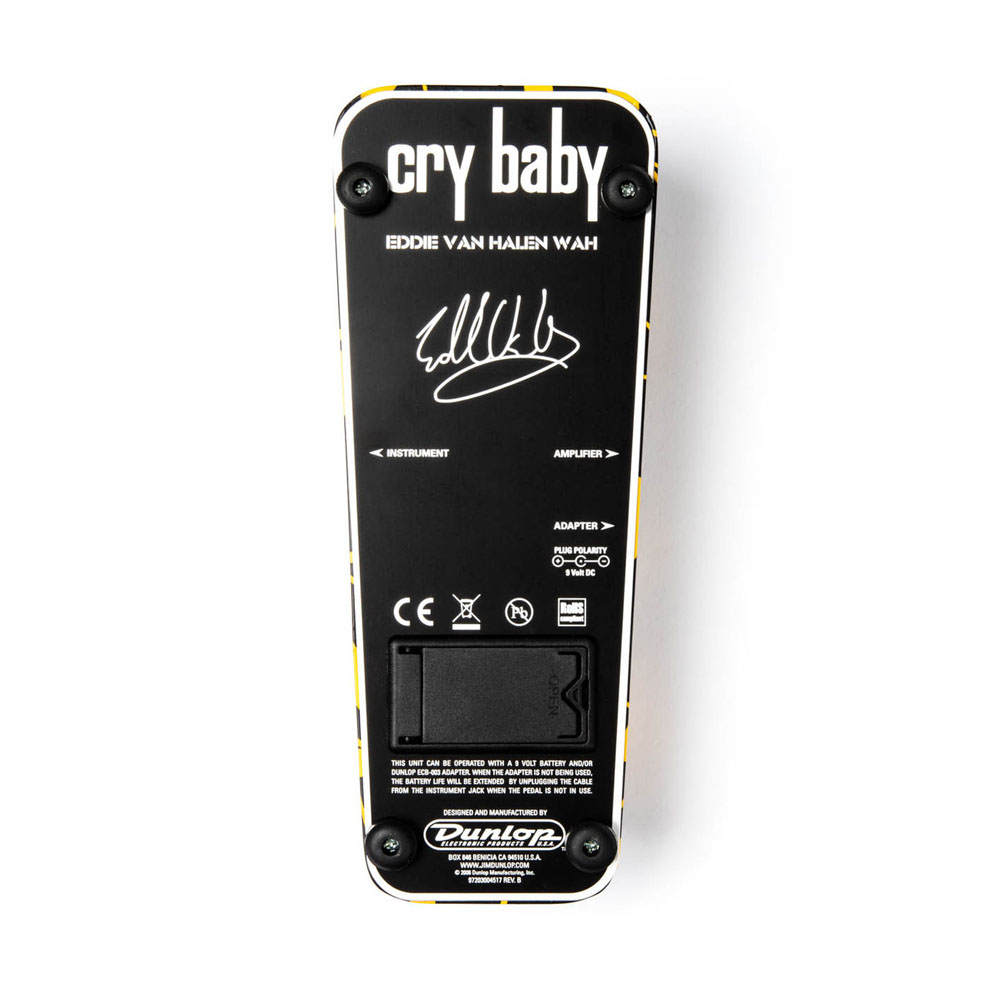 Педаль Cry Baby EVH95 Wah создана в результате тесного сотрудничества с легендарным гитаристом Эдди Ван Халеном. Она в точности повторяет звучание и тон педали Ван Халена, имеет пассивный байпас, два светодиода индикации включения и конечно же оформление в стиле Эдди. Воссоздан также эффект изношенности потенциометра и подобран индуктор для EVH Wah Wah. Эта педаль может питаться от 9-вольтовой батареи, 9-вольтового адаптера Dunlop ECB003 или блоков питания DC Brick™, Iso-Brick™ и Mini Iso-Brick™ (не входят в комплект).