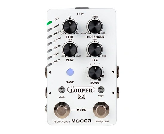 Looper X2 поддерживает функцию автоматической записи, которая активируется, как только вы начнете играть. Ручка THRESHOLD позволяет точно настраивать уровень чувствительности для старта записи, чтобы ваш процесс был максимально естественным и удобным.