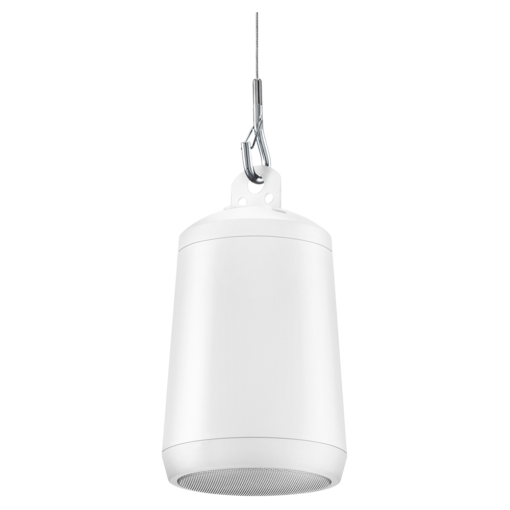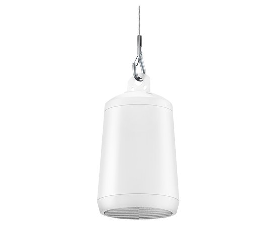 Пассивный подвесной громкоговоритель, 50 мм динамик, мощность 30Вт, частотный диапазон (-10дБ) 150-20000Гц, чувствительность  84дБ (1Вт/1м), макс.давление 102дБ, угол раскрытия 150°х150°, сопротивление 16Ом, цвет белый, размеры(В х диаметр) 201x113мм, вес 2,04кг.
