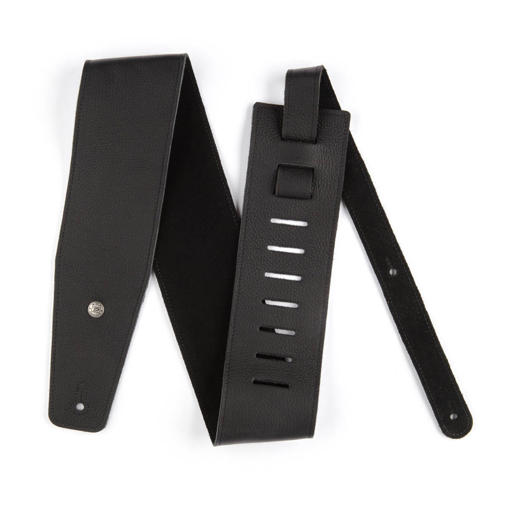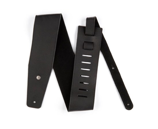 Ремень для гитары, серия BMF, ширина 3,5", выполнен из итальянской анилиновой кожи, текстурная поверхность, замша на внутренней части, акцентированная стальная пуговица, ощущается мягким и разношенным даже с тяжелыми инструментами, обеспечивает надежную стабильность и безопасность удержания гитары, регулируемая длина от 37,5 до 58 дюймов, напоминает о старинном мастерстве и качестве, черный цвет.