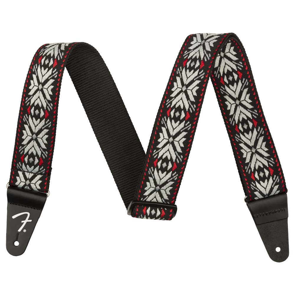 Ремень для гитары, регулируемая длина 86 - 150 см, современная интерпретация классического дизайна, прочная плетёная ткань с замысловатым узором, трубчатая нейлоновая основа для комфорта, наконечники Fender "F" из кожи для надёжного крепления, изготовлен в Канаде.