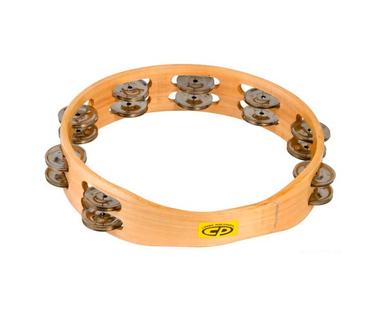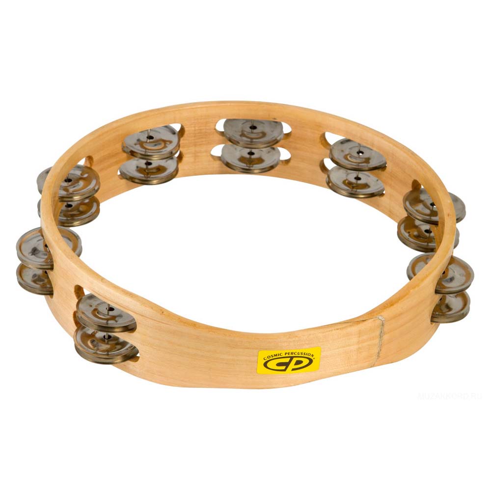 Ручной тамбурин, джинглы из стали (2 ряда по 8 пар), воспроизводит яркий, высокий звук; деревянная форма натурального цвета.
