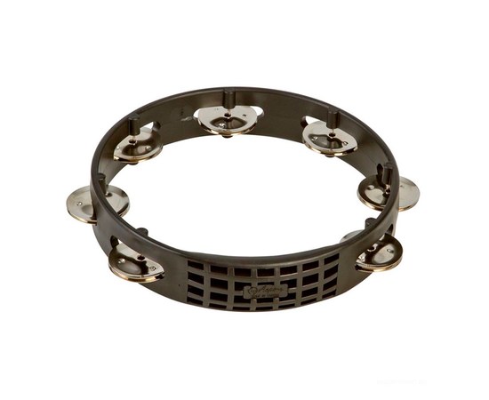 Тамбурин с прочной пластиковой рамой, диаметр 8" (20.3 см), джинглы из никелерованной стали (1 ряд по 7 пар) воспроизводящие яркий, высокий звук; прочная удароустойчивая пластиковая форма черного цвета, запатентованная система крепления, оснащен удобной рукояткой.