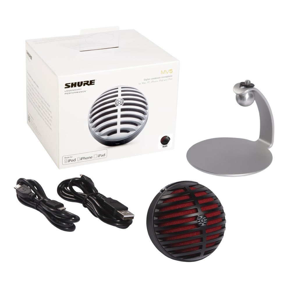 С концептуальным и стильным дизайном, который необычайно вдохновляет на музыкальное творчество, цифровой конденсаторный микрофон Shure MV5 предлагает профессиональное качество звучания,  а также гибкость подключения для iOS и USB устройств.