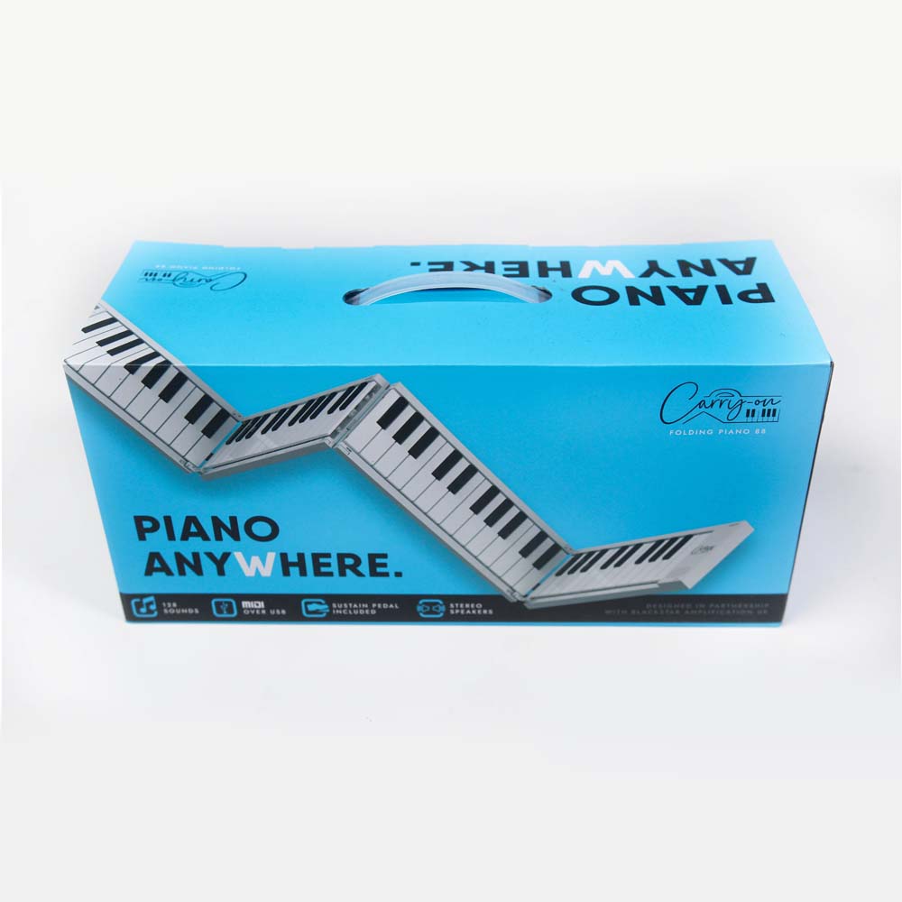 Складное пианино Carry-on весом 1,6 кг и длиной всего 33 см в сложенном виде, представляет собой уникальное полноразмерное пианино с 88 клавишами, удобном для хранения и переносном формате. Играйте в любое время, используя наушники или встроенные стереодинамики. Благодаря 128 тембрам и аккомпанементам, а также MIDI через USB - это идеальное фортепиано, которое можно взять с собой куда угодно!