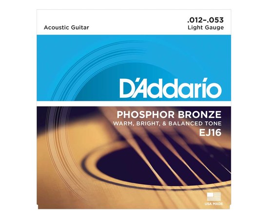 БрендD'addario ЖесткостьLight Защитное покрытиеНет Калибр струн12-53 Материал обмоткиФосфорная бронза ТипСтруны для акустической гитары
