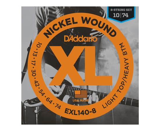 D'Addario EXL140-8 - это комплект одних из самых популярных гибридных струн в мире, в который включены две дополнительные басовые струны для 8-струнных электрогитар. Такая комбинация обеспечивает мощные и насыщенные басы для жесткой игры аккордами и гибкие стальные струны для исполнения бендов. Яркое звучание и потрясающая интонация D'Addario EXL140-8 - это выбор рок-музыкантов по всему миру! Струны поставляются в безвредной для окружающий среды, защищающей от коррозии упаковке, сохраняющей струны всегда свежими.