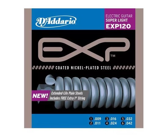 Струны с EXP покрытием для акустических обладают традиционным видом, но отличие их в том, что это покрытие создаёт преграду для коррозии и износа, которые обычно сокращают срок службы ваших струн. EXP покрытие сохраняет звучание свежего звучания струны, которое продлится в 3-4 раза дольше. Ультратонкий слой слой EXP покрытия соединяется с обмоточной проволокой, которая следовательно наматывается на шестигранный стержень из никелированной стали. Это создаёт неверотяное ощущение комфорта, долговечность струн, устойчивость перед коррозией, а также, потрясающее звучание, свойственное струнам D`Addario.