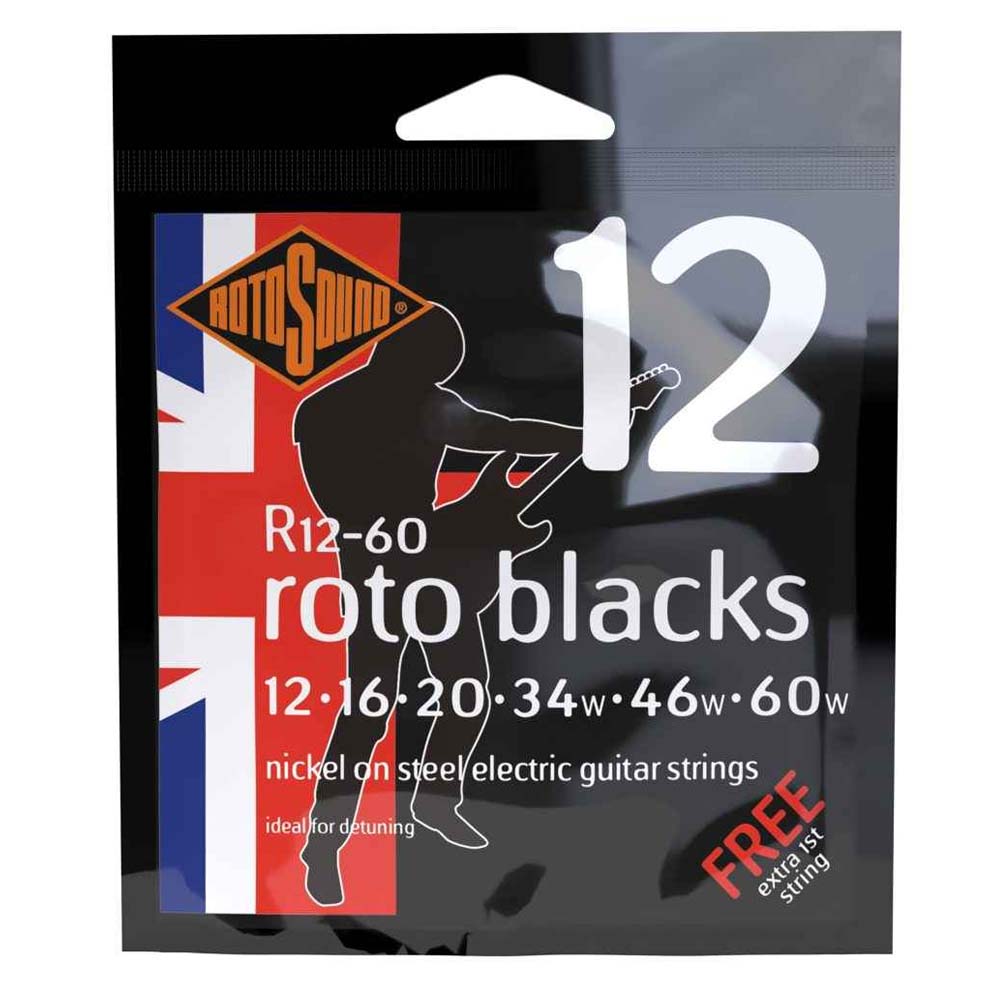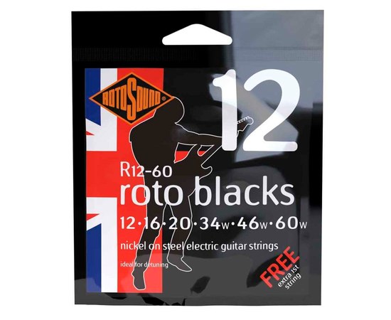 Rotosound Roto Blacks R12-60 - это гибридная версия самых продаваемых струн для электрогитары с нестандартным калибром. Сочетание шелковистой никелевой обмотки и мощного стального сердечника делает струны Roto супер универсальными для любого стиля игры и жанра. Для производства струн Rotosound используют только качественные материалы, чтобы гарантировать комфорт, надёжность и отличные звуковые качества. Благодаря гарантии яркого звучания, повышенной долговечности и необыкновенной прочности - струны от Rotosound используются многими известными гитаристами по всему миру!
