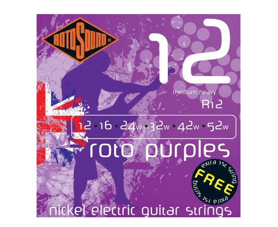 Отпраздновав 50-летие производства признанных во всем мире высококачественных струн, Rotosound, с большой гордостью, предлагает стальные струны с никелевым покрытием для электрогитар серии ROTOS, представленных в широком диапазоне размеров для 6,7,8 и 12 струнных инструментов способных удовлетворить ежедневные потребности музыкантов играющих музыку в самых разных стилях. Сверх секретное соотношение сердечника и покрытия используемое в производстве, предлагает такие тональные нюансы и превосходные сустейн, на которые некоторые бренды могут только равняться. А удлиненная европейская намотка у основания струны делает ее крепление на гитаре более крепким. Все струны Rotosound производятся исключительно в Англии. Для производства струн Rotosound использует только качественные материалы, чтобы гарантировать комфорт, надёжность и отличные звуковые качества. Благодаря гарантии яркого звучания, повышенной долговечности и необыкновенной прочности - струны от Rotosound используются многими известными гитаристами по всему миру!
