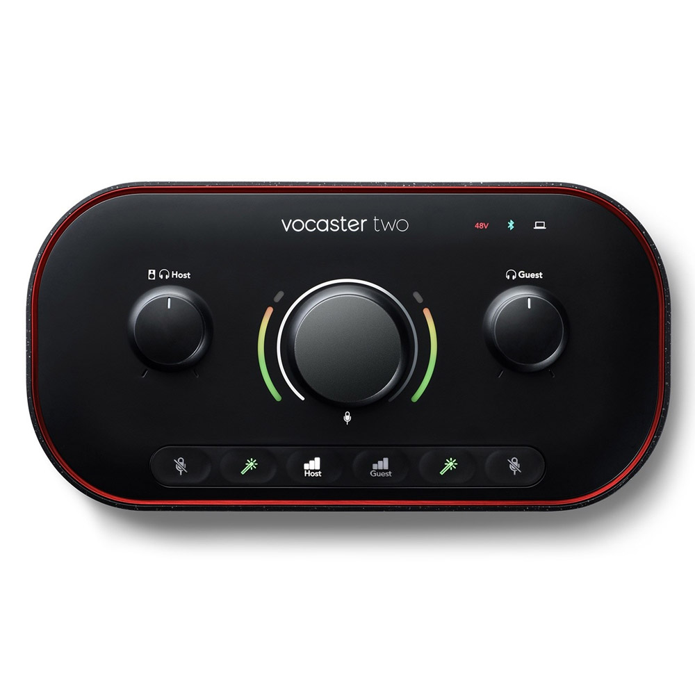 Vocaster Two – это топовый аудиоинтерфейс от Focusrite, который идеален для подкастинга с участием двух человек. Он оснащен супер гибким управлением, звуком студийного качества и удобными функциями, которые значительно упрощают процесс потокового вещания и записи эфиров.