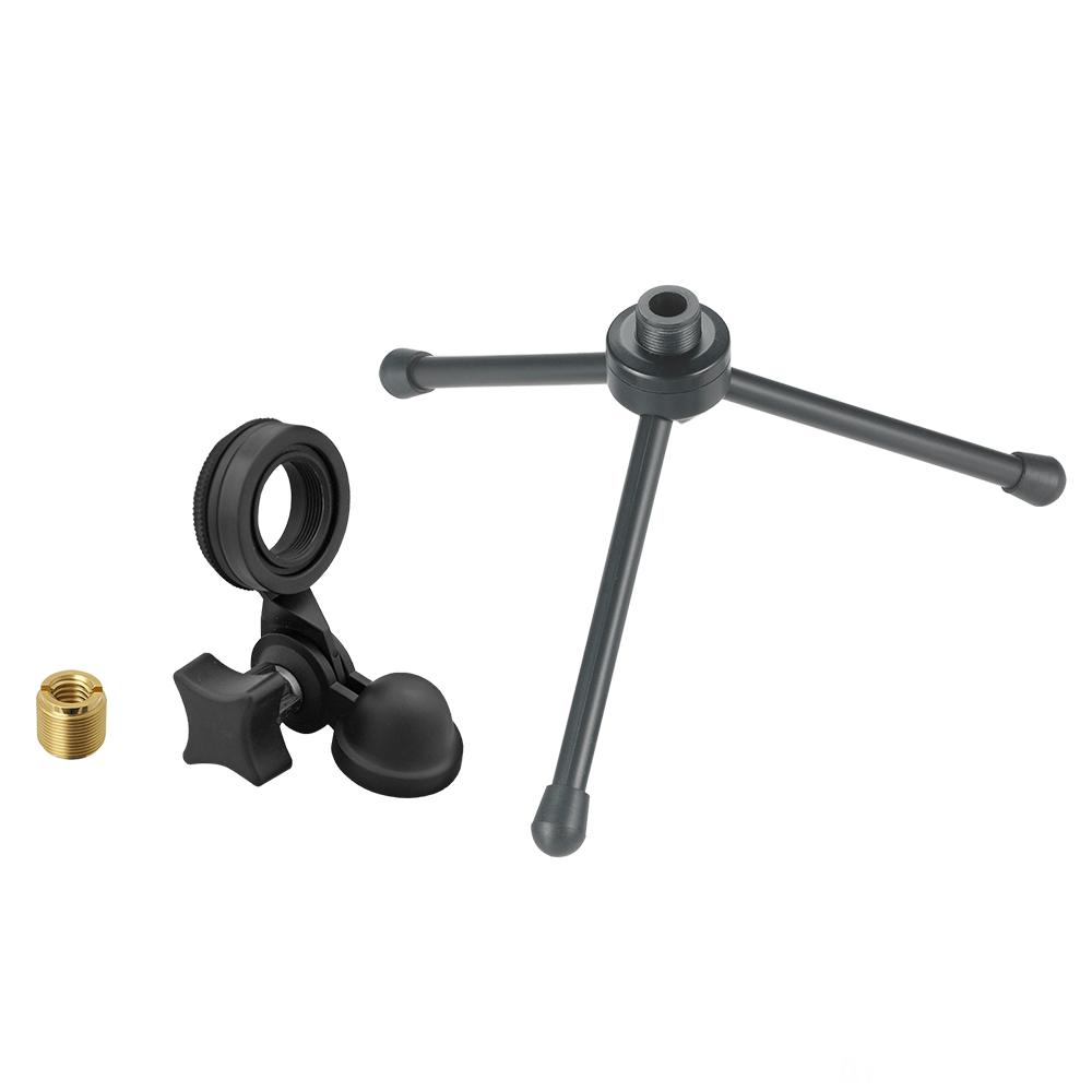 Поставляется с поворотным креплением для стоек с резьбой 5/8"-27; переходником с резьбой 5/8"-27 на 3/8"-16; мягким защитным чехлом; настольной подставкой-треногой; USB-кабелем 3,1 м.
