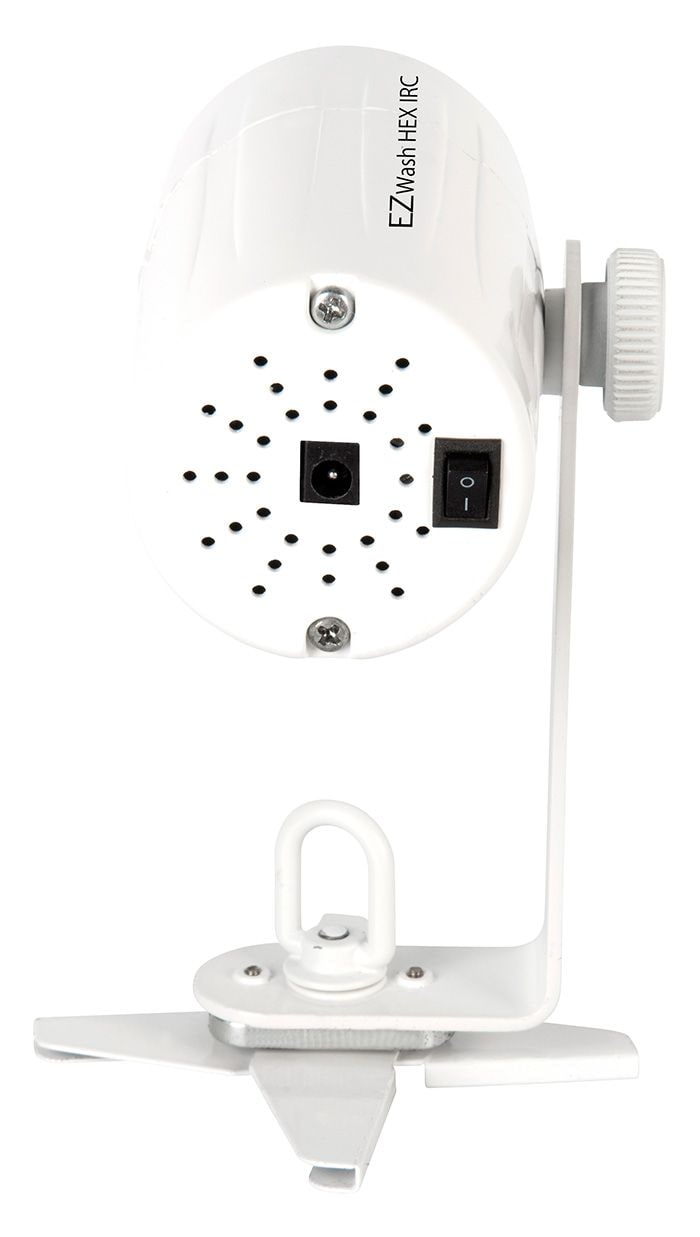 CHAUVET DJ EZwash Hex IRC является светодиодным светильником с автономной батареей питания. Идеально подходит для подсвечивания стола, главных центральных частей и других объектов. LED технология 6-в-1 (RGBAW + UV) делает прожектор универсальным, освещение выглядит лёгким и ровным. Светильник имеет магнитную базу, которая прикрепляется к большинству металлических поверхностей, устраняя необходимость в крепеже. В комплект входит зажим с петлёй, что позволяет крепить оборудование в разных положениях. EZwash Hex IRC имеет удобную беспроводную связь, она доступна с дополнительным IRC-6 пультом дистанционного управления.