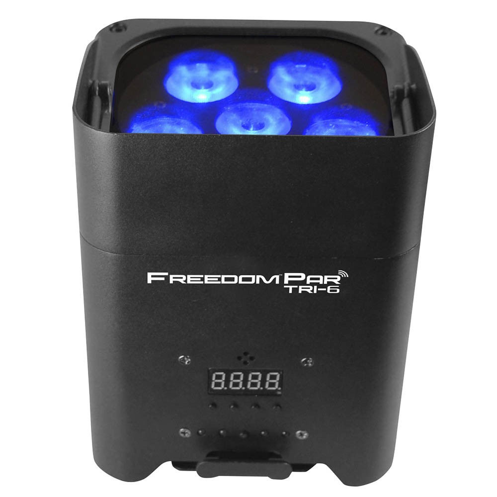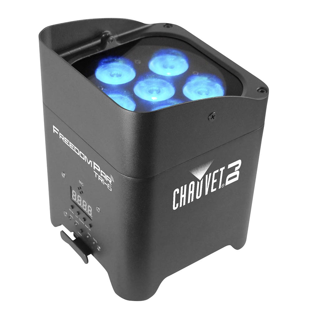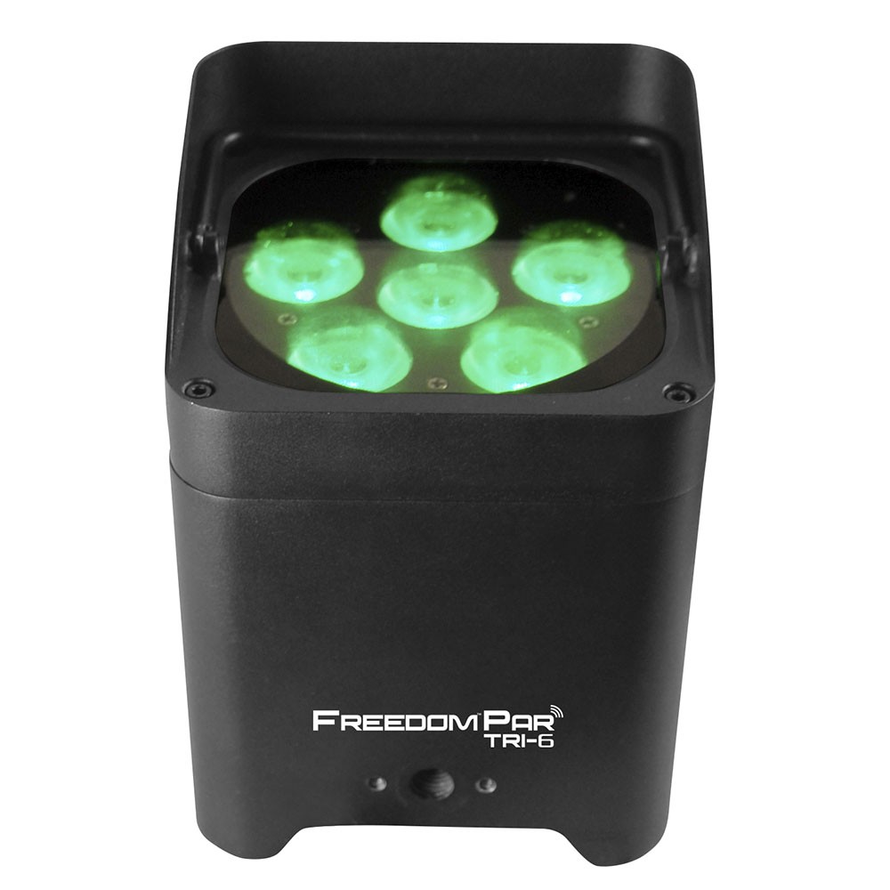 FreedomParTri-6 – это мощный, яркий световой прибор с по-настоящему 100% беспроводным управлением благодаря аккумулятору и встроенному D-Fi трансиверу. FreedomPar Tri-6 оснащен 6 трехцветными RGB светодиодами мощностью по 3 Вт каждый и может управляться непосредственно с панели управления, входящего в комплект пульта дистанционного управления CHAUVET® DJ IRC-6 или же с любого мобильного телефона/планшета через мобильное приложение «FlareCON». Световой прибор идеально вписывается в систему TRUSST® и все остальные конструкции из 12-дюймовых ферм, а так же безопасно и стильно транспортируется в CHAUVET® DJ CHS-FR4 VIP GearBag или в дорожной сумке FreedomCharge 9.