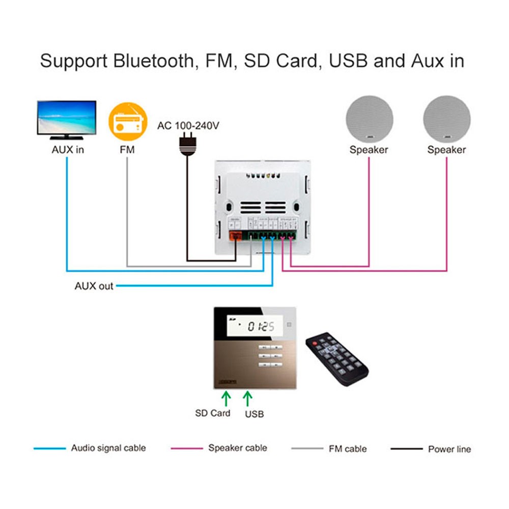 • Аудио источники: USB, Micro SD, Bluetooth и  FM, 2 AUX входа