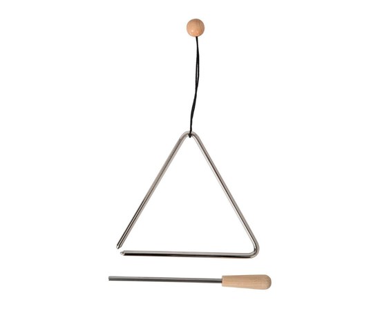 Треугольник 20 см, специальный стальной сплав для оптимального звучания, в комплекте колотушка и подвеска, сделан в Германии.