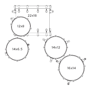 - Бас-барабан: 22" x 18"