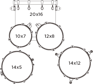 • Бас-барабан: 20 x 16