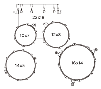 - Бас-барабан: 22 x 18