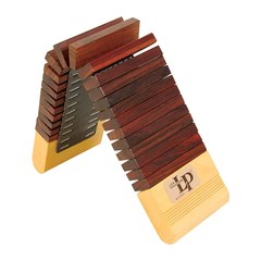 Фирменная деревянная трещотка (кокирико) Корпус из балтийской берёзы/африканского сапеле Размер - 3,5 х 8 х 35 см Деревянные рейки, соединенные кожаными ремнями Закреплены на концах ручками