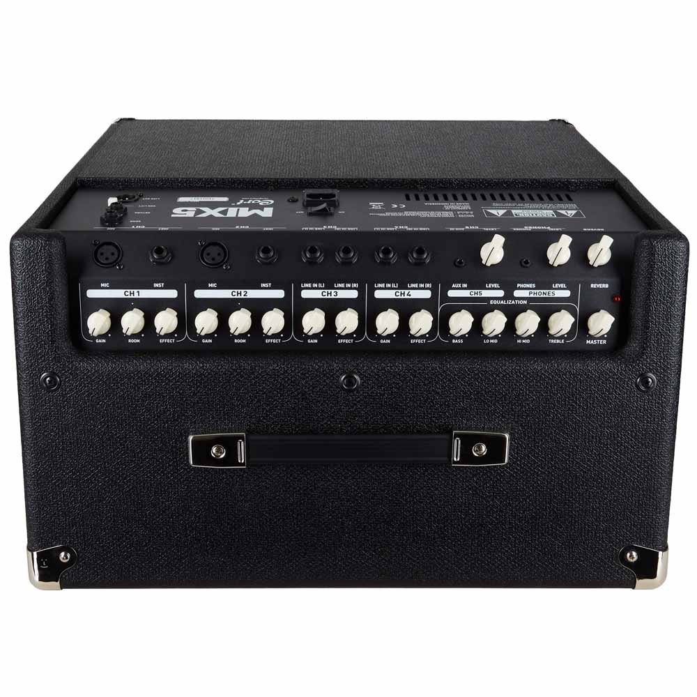 MIX5 - это многоцелевой комбоусилитель мощностью 150 Вт с 5 входными каналами, 4-полосным эквалайзером и встроенной реверберацией. Гибкость использования и отличное звучание делают его идеально подходящим для залов малых и средних размеров, а также для уличных представлений. В верхней части задней панели расположены входные разъемы для удобного подключения электрогитар и бас-гитар, электронных барабанов или драм-машин, микрофонов, клавишных инструментов или других источников звука. MIX5 оснащен прочным корпусом и специально разработанными 12-дюймовым динамиком и твитером, обеспечивающими оптимальное звучание любого подключенного инструмента.