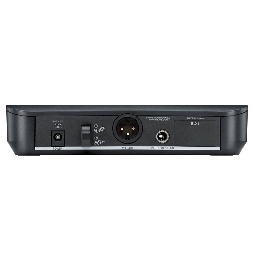 Радиосистема BLX24 снабжена аналоговым беспроводным приемником BLX4, который обеспечивает отменную линейность и хорошую частотную характеристику. Приемник BLX4 готов к работе прямо из коробки и является естественным выбором для исполнителей, которые хотят избавиться от проводов. Приемник поддерживает до 12 совместимых каналов на группу, функцией сканирования каналов делает настройку радиосистемы очень простой и легкой.