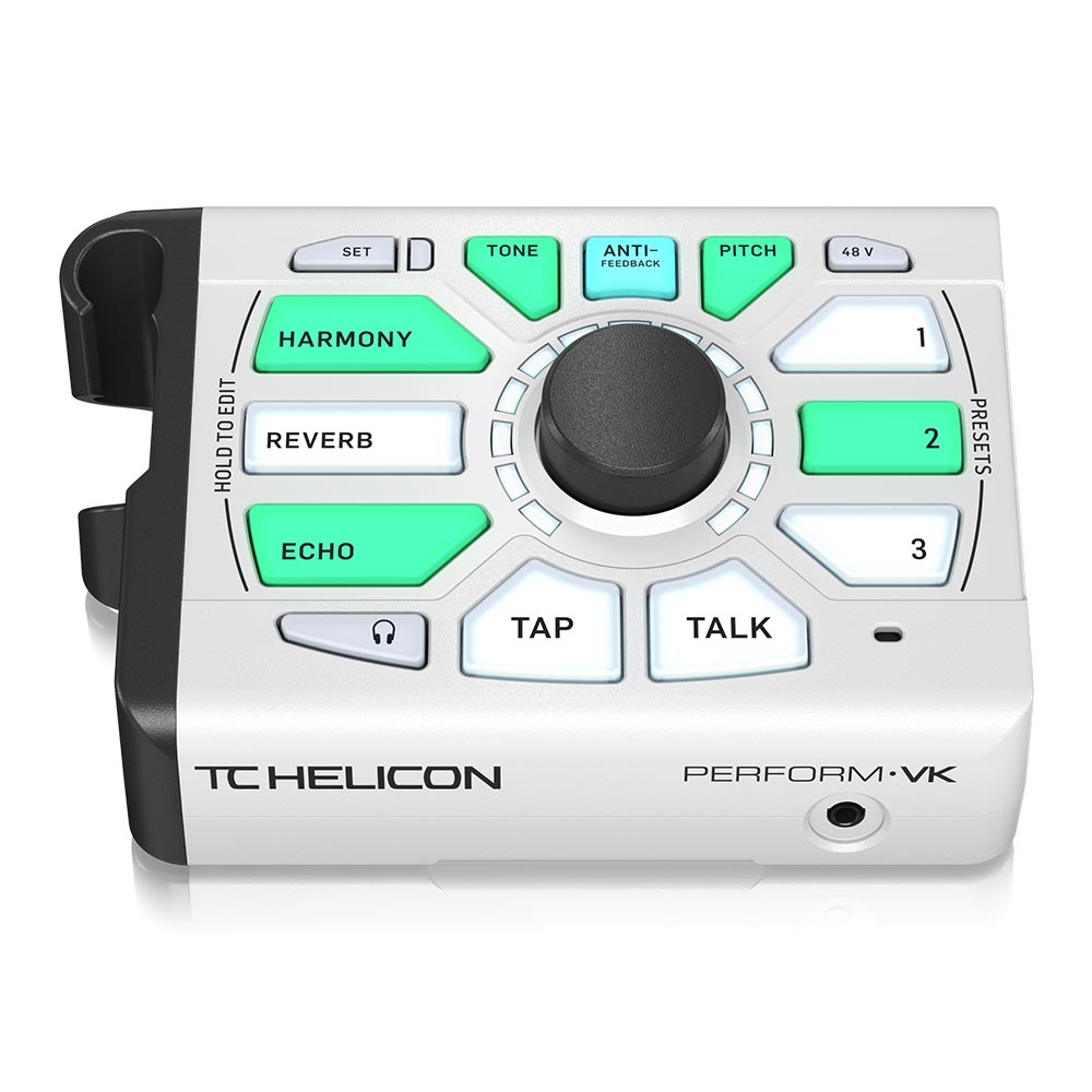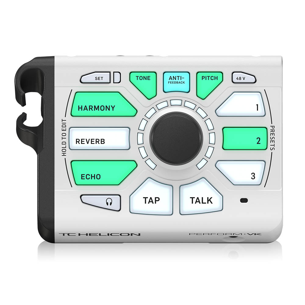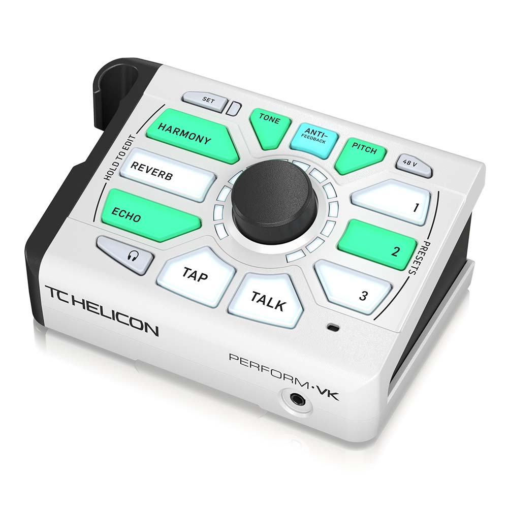 Perform-VK поставляется со встроенными эффектами студийного качества Harmony, Echo и Reverb, плюс вы можете использовать приложение «beaming» для отправки пресетов, содержащих другие эффекты, такие как Transducer (мегафон / искажение), HardTune, Doubling и многое другое прямо со своего смартфона или планшета.