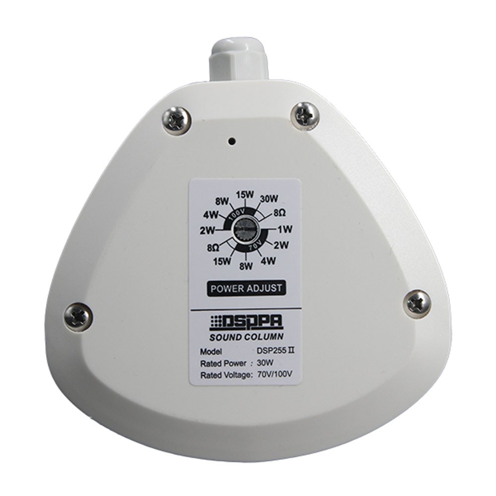 DSP255II - это стойкая к атмосферным воздействиям колонка для наружного монтажа со встроенным трансформатором 70 В / 100 В. Передача 70 В / 100 В осуществляется в высоковольтном, слаботочном режиме, что делает возможным передачу на большие расстояния и параллельное подключение нескольких громкоговорителей.